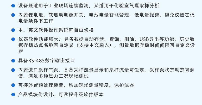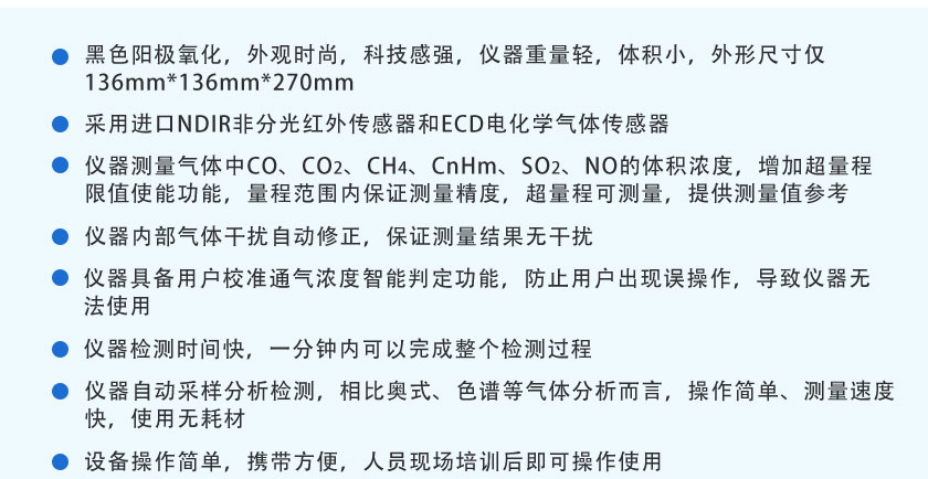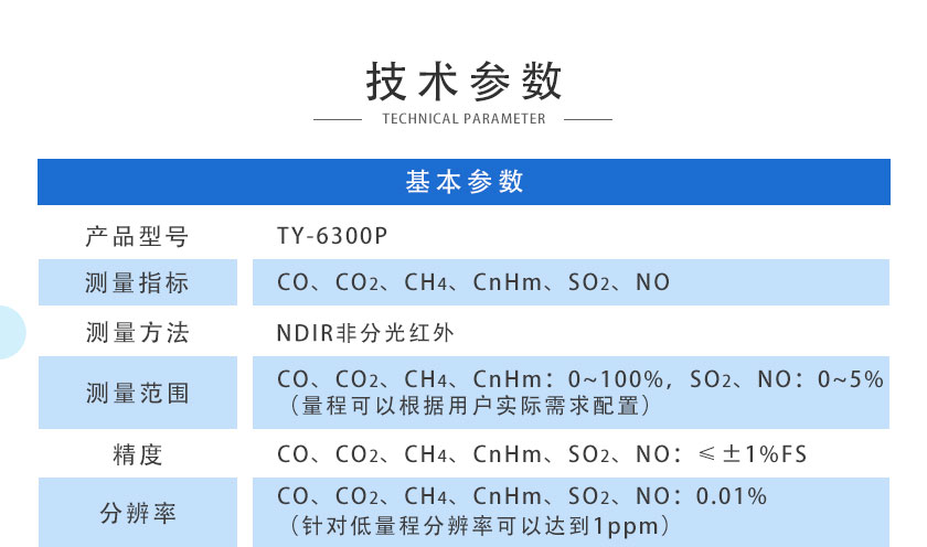 CO、CO2、CH4、CnHm、SO2、NO:0.01%(針對低量程分辨率可以達(dá)到1ppm) |