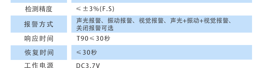 聲光報警、振動報警、視覺報警、聲光+振動+視覺報警、關閉報警可選 |