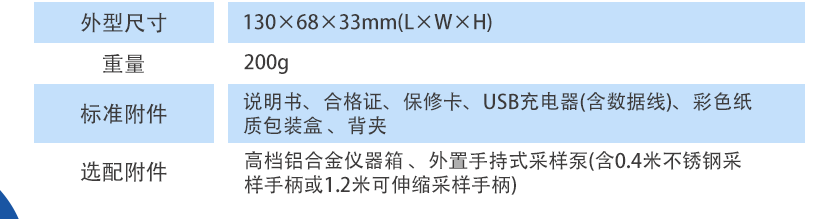擴散式測量,可選配采樣手柄(外置手持式采樣泵) |