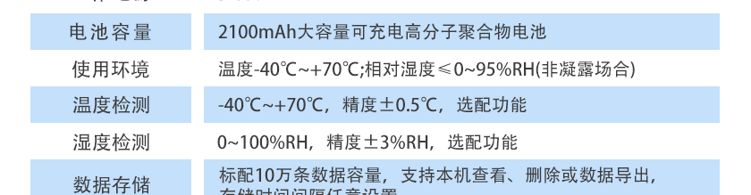 標配10萬條數據容量,支持本機查看、刪除或數據導出,存儲時間間隔任意設置 |
