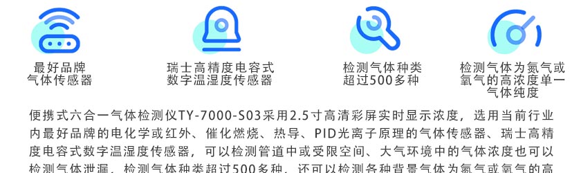 可檢測任意6種氣體濃度和溫濕度,最多可擴展到8種氣體,視傳感器和現場環境而定 |