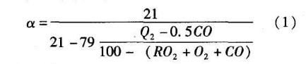 空氣消耗系數(簡稱α)直接影響爐的燃燒狀況及熱效率、氧化燒損等。α的大小與燃燒種類、燃燒方法、燃燒裝置的結構及其工作好壞都有關。氣體燃料空氣消耗系數的經驗數據為n=1.05~1.15.通過氣體成分分析儀,可按以下公式計算出α。