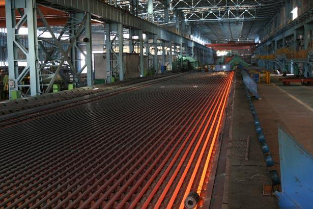 從煉鋼廠出來的鋼坯還僅僅是半成品,必須到軋鋼廠去進行軋制以后,才能成為合格的產品。從煉鋼廠送過來的連鑄坯,首先是進入加熱爐,然后經過初軋機反復軋制之后,進入精軋機。軋鋼屬于金屬壓力加工,說簡單點,軋鋼板就像壓面條,經過搟面杖的多次擠壓與推進,面就越搟越薄。在熱軋生產線上,軋坯加熱變軟,被輥道送入軋機,最后軋成用戶要求的尺寸。軋鋼是連續的不間斷的作業,鋼帶在輥道上運行速度快,設備自動化程度高,效率也高。熱軋成品分為鋼卷和錠式板兩種,經過熱軋后的鋼軌厚度一般在幾個毫米,如果用戶要求鋼板更薄的話,還要經過冷軋。