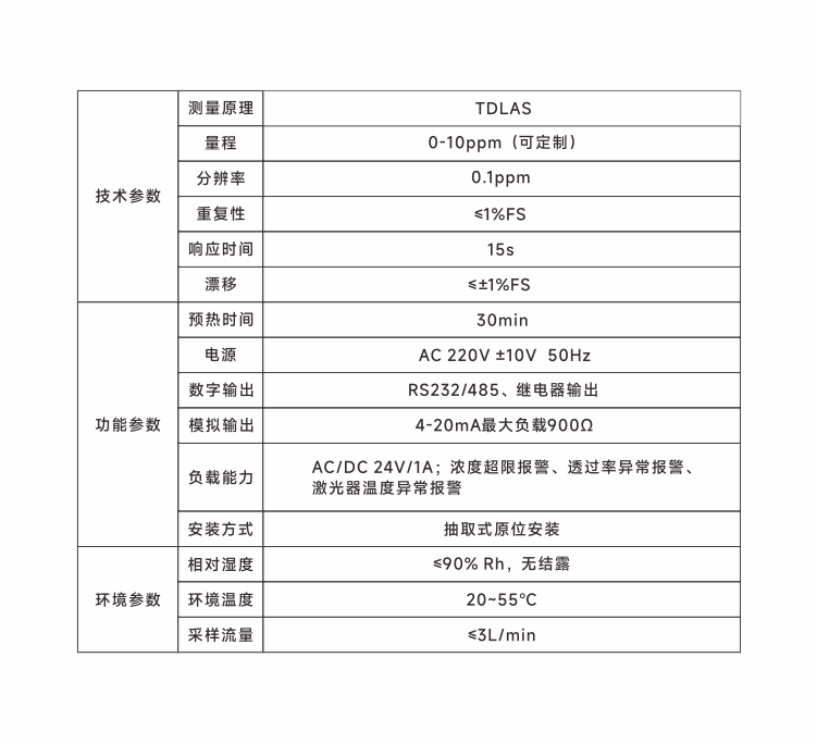 ●  采用熱濕取樣方法,不受現場安裝條件的限制,適用性廣,使用和維護簡單;