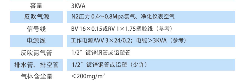 N2壓力 0.4~0.8Mpa氮氣、凈化儀表空氣