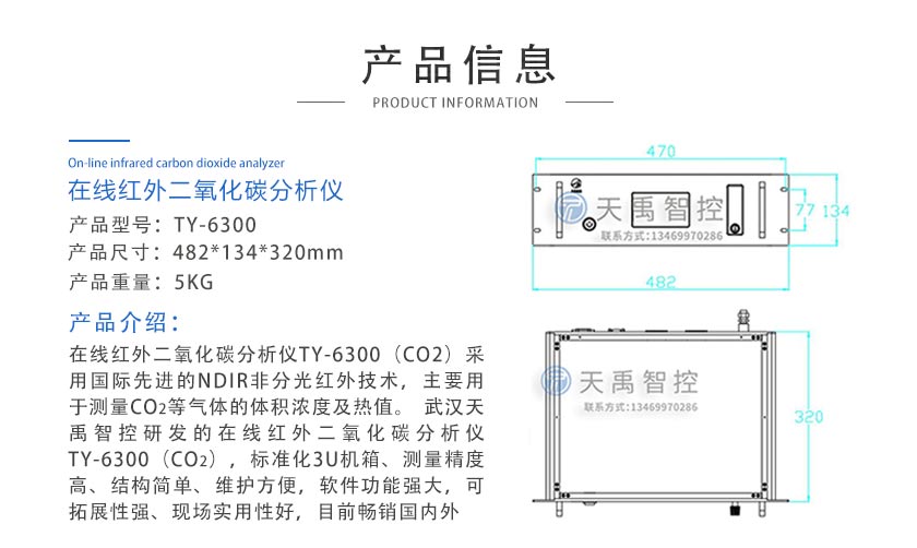 在線紅外二氧化碳分析儀TY-6300(CO2)采用國際最先進的NDIR非分光紅外技術,主要用于測量CO2等氣體的體積濃度及熱值。 武漢天禹智控研發的在線紅外二氧化碳分析儀TY-6300(CO2),標準化3U機箱、測量精度高、結構簡單、維護方便,軟件功能強大,可拓展性強、現場實用性好,目前暢銷國內外。 適用于鋼鐵、化工、煤氣化、生物氣化、節能監測、能效測評等領域,測量二氧化碳(CO2)氣體成分的體積濃度和熱值。