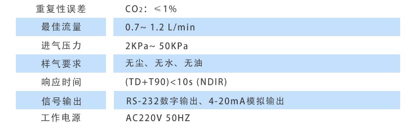 6)重復性誤差:CO2:≤1%