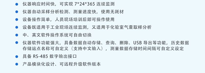 7)儀器響應時間快,可實現7*24*365連續監測。