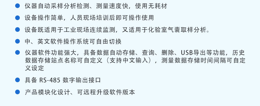 該分析儀基于紫外差分吸收光譜技術(DOAS)和化學計量學算法(PLS),能夠測量SO2、NO、NO2、O2、NH3、CO、CO2、Cl2、O3、H2S、HCl、CH3I等氣體濃度,具有測量精度高、可靠性強、運行成本低、響應時間快、量程跨度大、應用范圍廣等特點。