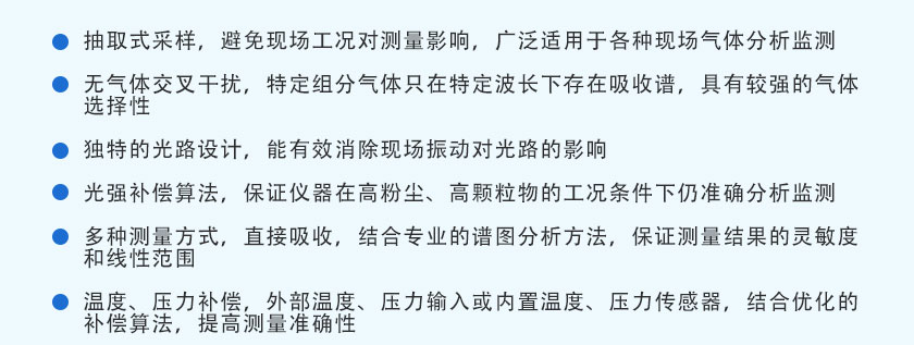 用國(guó)際先進(jìn)的TDLAS激光技術(shù),主要用于測(cè)量各種氣體中的HF、HCL、O2、CO、CO2、H2O、O2、NH3、CH4?等氣體體積濃度及熱值。