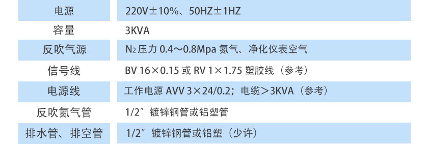 N2壓力 0.4~0.8Mpa氮?dú)?、凈化儀表空氣 |