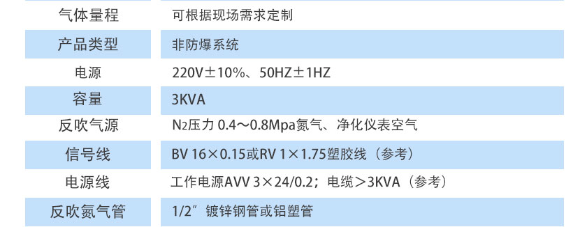 N2壓力 0.4~0.8Mpa氮氣、凈化儀表空氣 |