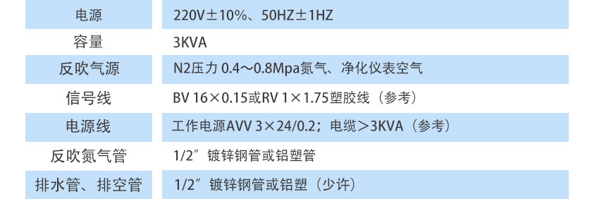N2壓力 0.4~0.8Mpa氮氣、凈化儀表空氣 |