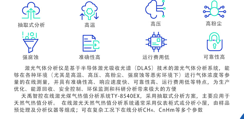 用國際先進的TDLAS激光技術,主要用于測量各種氣體中的HF、HCL、O2、CO、CO2、H2O、O2、NH3、CH4?等氣體體積濃度及熱值。