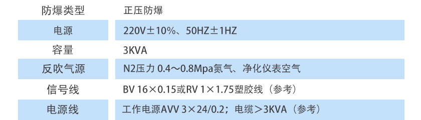 N2壓力 0.4~0.8Mpa氮氣、凈化儀表空氣 |