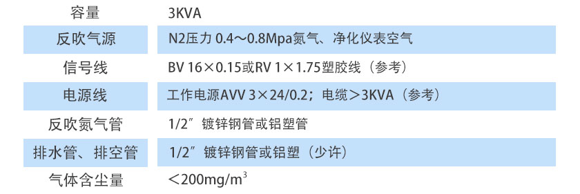 N2壓力 0.4~0.8Mpa氮氣、凈化儀表空氣 |