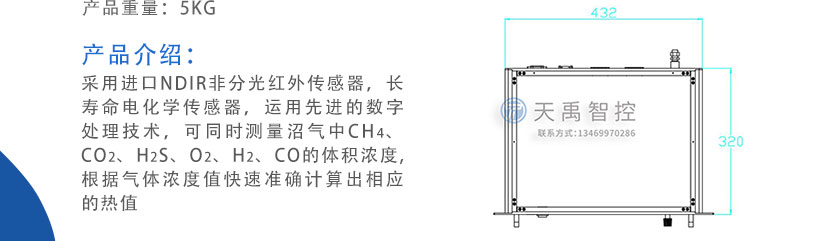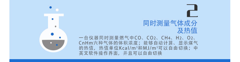 采用進(jìn)口NDIR非分光紅外傳感器,長(zhǎng)壽命電化學(xué)傳感器,運(yùn)用先進(jìn)的數(shù)字處理技術(shù),可同時(shí)測(cè)量沼氣中CH4、CO2、H2S、O2、CO、H2的體積濃度,根據(jù)氣體濃度值快速準(zhǔn)確計(jì)算出相應(yīng)的熱值。