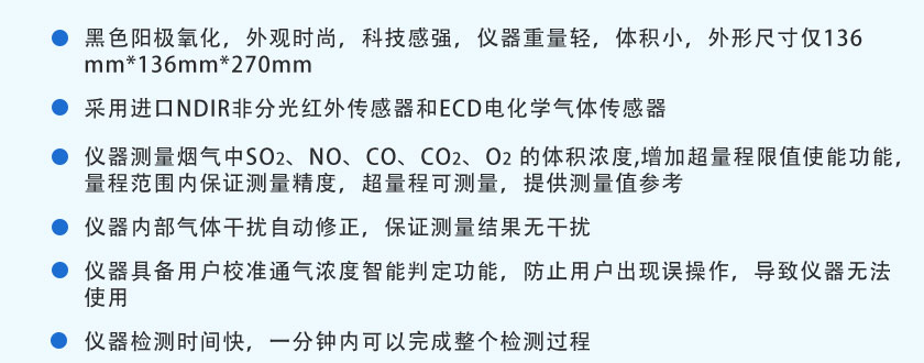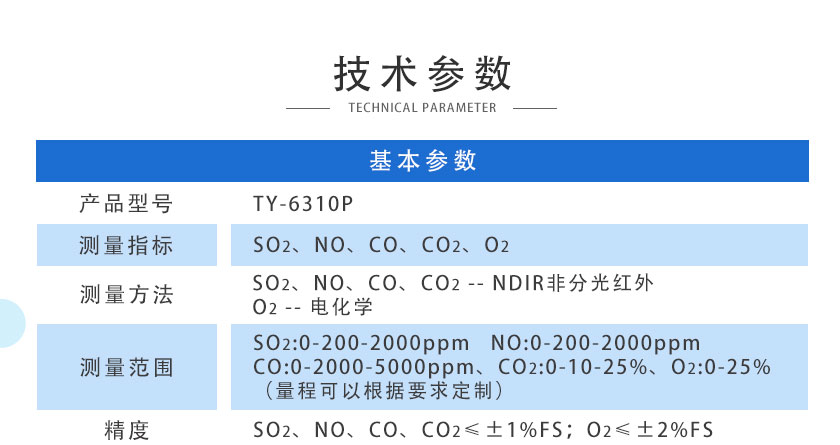 SO2:0-200-2000ppm ;NO:0-200-2000ppm ;CO:0-2000-5000ppm、CO2:0-10-25%、O2:0-25%(量程可以根據要求定制)