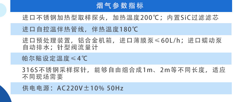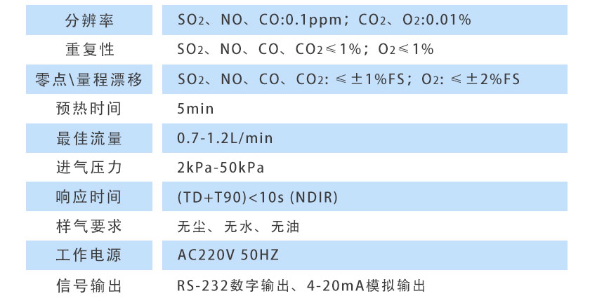 SO2、NO、CO、CO2≤±1%FS;O2≤±2%FS