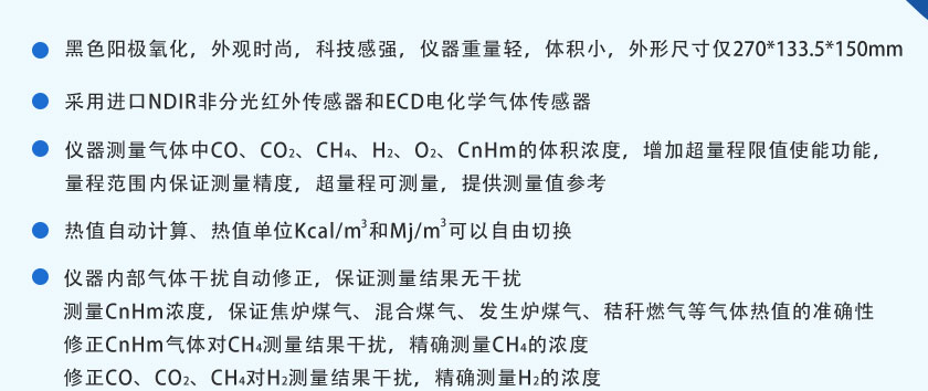 CO/CO2/H2/O2/CH4:0-100%;CnHm:0-10%; O2:0-25% |