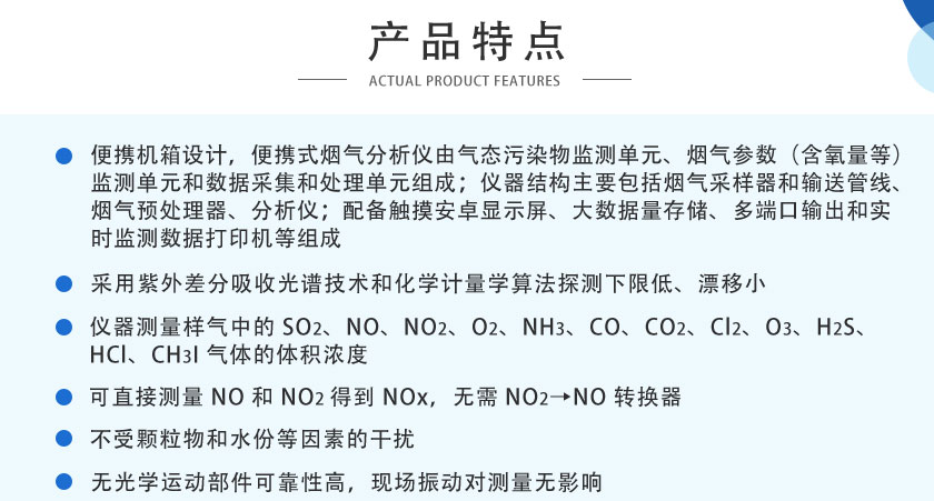 該分析儀基于紫外差分吸收光譜技術(DOAS)和化學計量學算法(PLS),能夠測量SO2、NO、NO2、O2、NH3、CO、CO2、Cl2、O3、H2S、HCl、CH3I等氣體濃度,具有測量精度高、可靠性強、運行成本低、響應時間快、量程跨度大、應用范圍廣等特點。