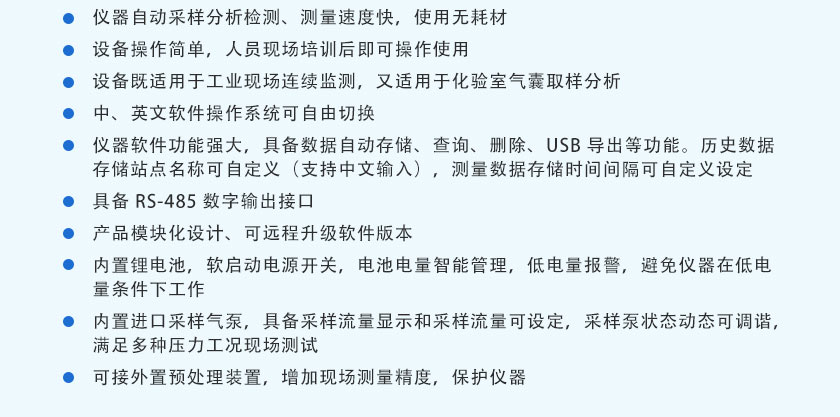 11)設備既適用于工業現場連續監測,又適用于化驗室氣囊取樣分析。